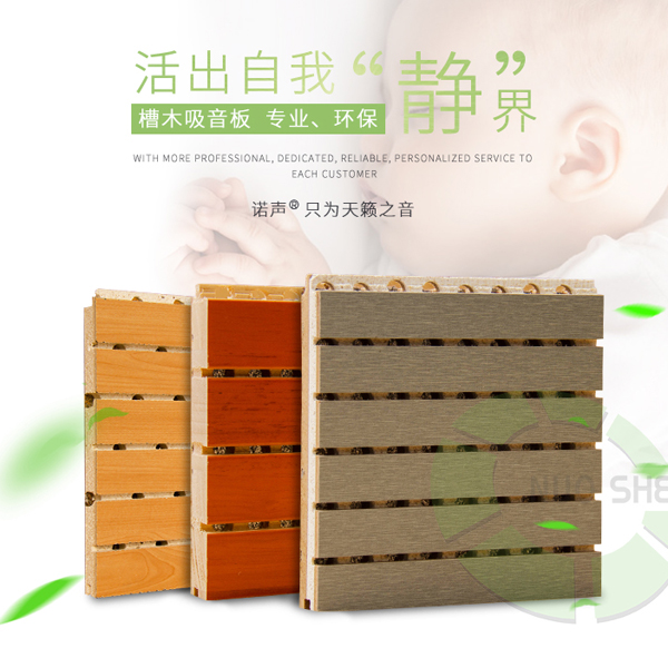 諾聲槽木吸音板是一種在高密度板的基礎(chǔ)上,板面開槽板背穿孔達(dá)到狹縫共振的優(yōu)質(zhì)吸聲材料。是一種理想的吸聲裝飾材料。具有吸音、環(huán)保、阻燃、隔熱、保溫、防潮、防霉變、易除塵、易切割、可拼花、施工簡便、穩(wěn)定性好、抗沖擊能力好、獨(dú)立性好、性價比高等優(yōu)點,有豐富多種的顏色可供選擇,可滿足不同風(fēng)格和層次的吸音裝飾需求。